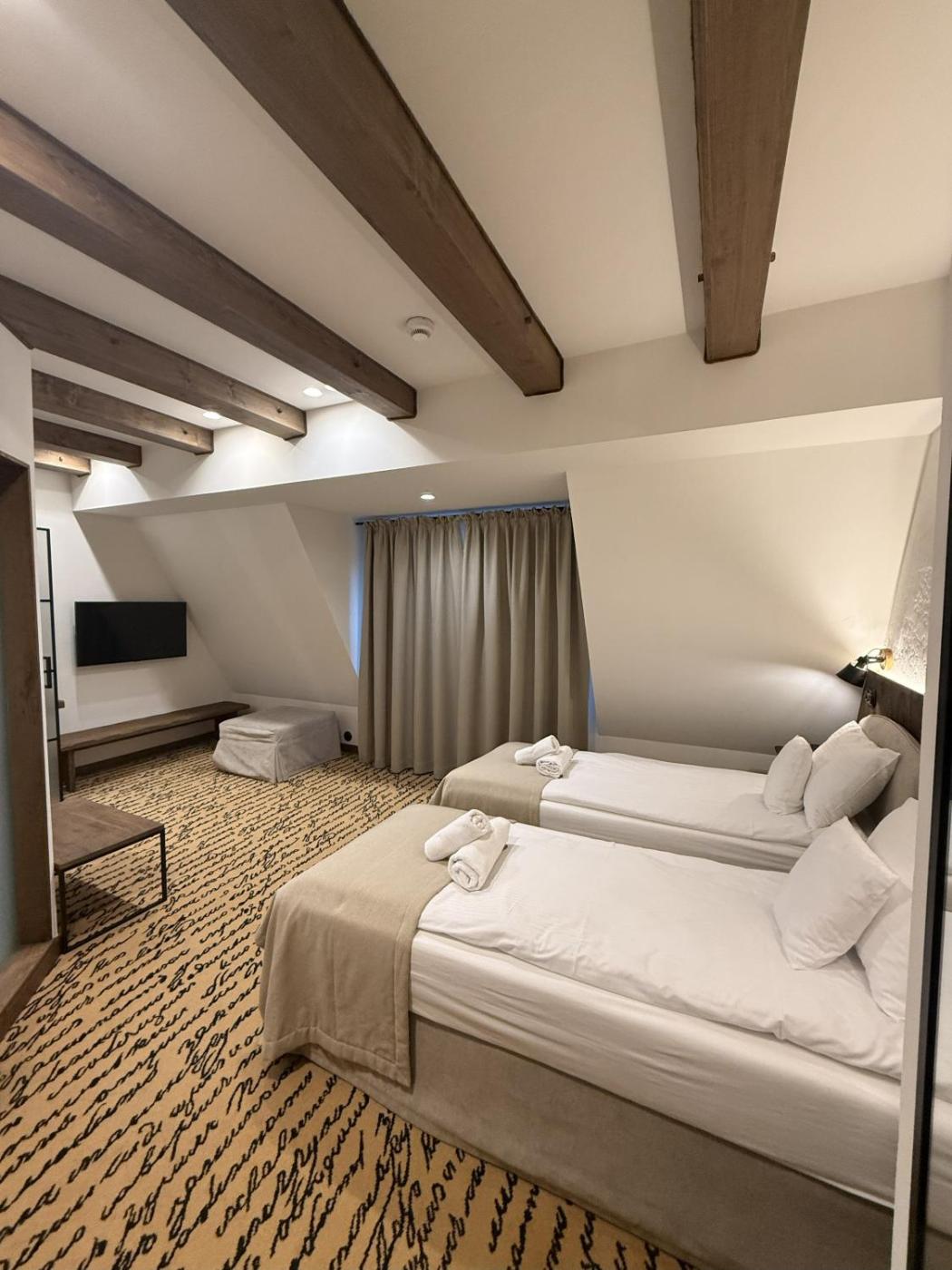 Pokój Dwuosobowy typu Deluxe z 1 lub 2 łóżkami. The twindouble room features air conditioning, a tea and coffee maker, as well as a private bathroom boasting a shower and a hairdryer. The twindouble room offers a wardrobe, a sofa, a carpeted floor, heating, as well as a flat-screen TV. Pokój Dwuosobowy z 1 lub 2 łóżkami - 2 osobowy. Powierzchnia pokoju ok.: 25 mkw. ;